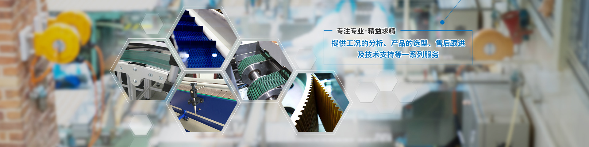 產品涵蓋各種常用形式的傳輸帶:平面傳輸帶,塑料模組式網帶,同步帶等等